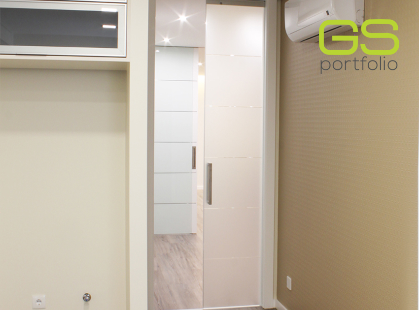 - Placard encastrée GS CONCEPT avec portes battantes en laqué blanc mat.