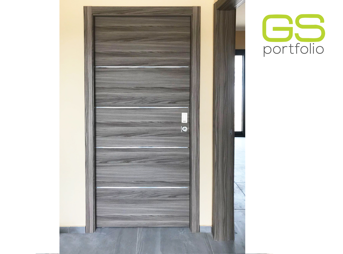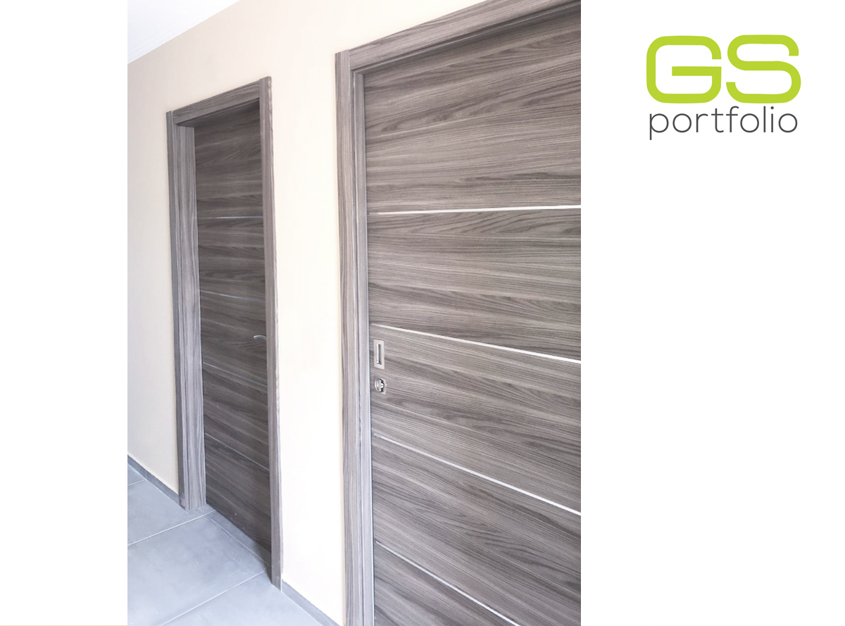 Contre-châssis UNICO par OPENSPACE, avec porte en bois recouverte de vinyle – OLMO GRIS, à 5 rainures par GS DOORS !