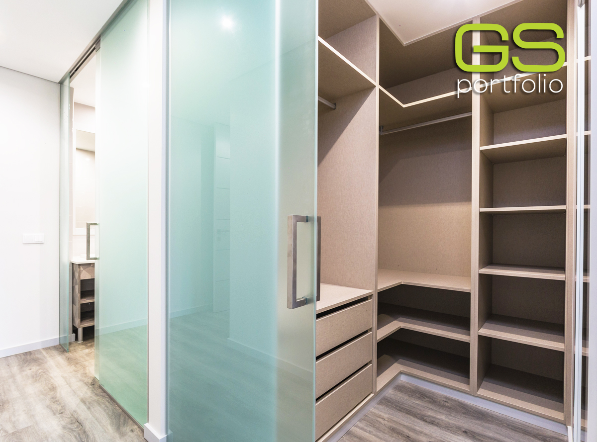 - Système de porte coulissante INSIDE DV by OPENSPACE avec panneau fixe en verre dépoli, associé à une porte coulissante en verre dépoli !