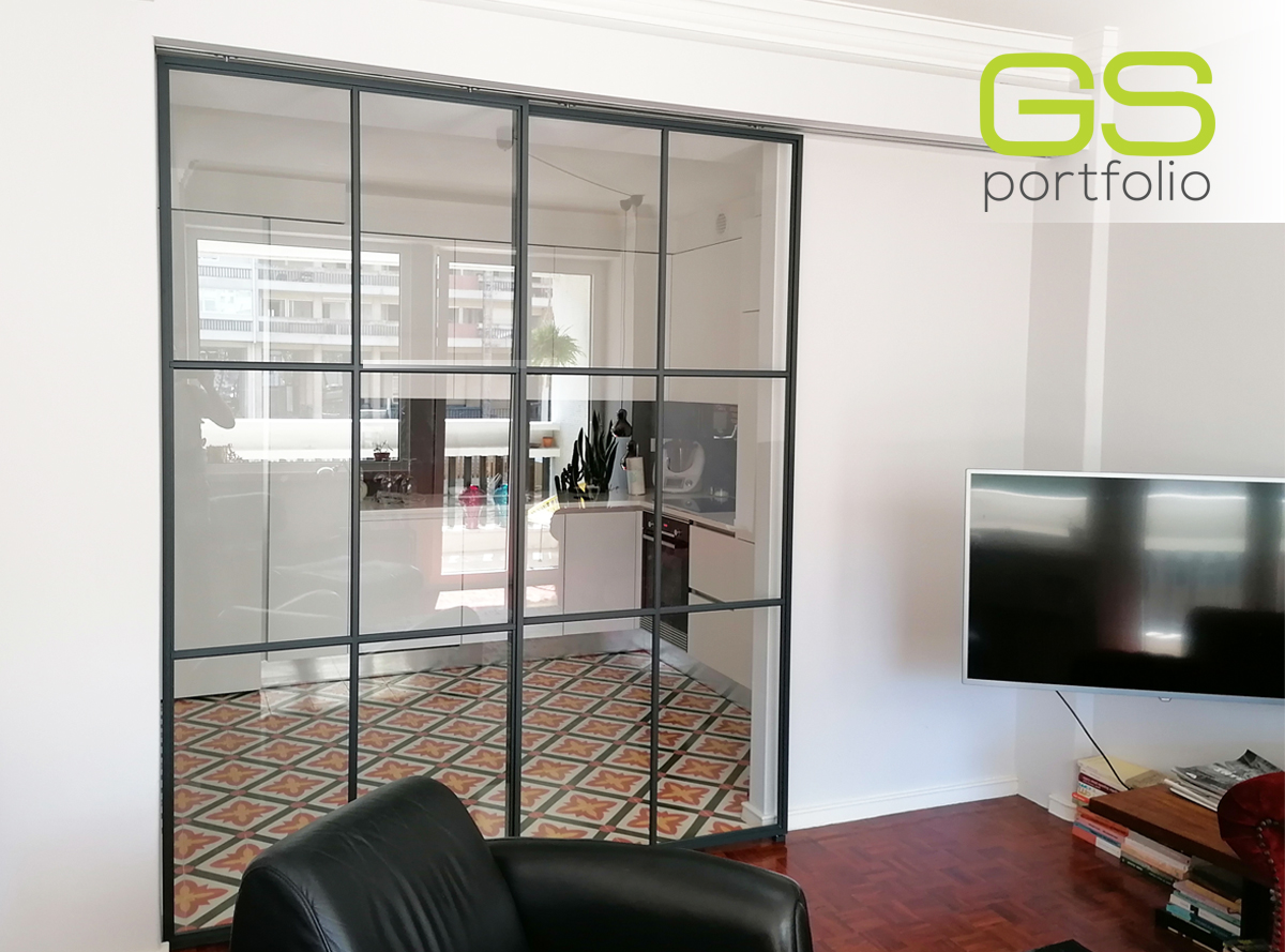 Système coulissant INSIDE avec portes coulissantes DUO en verre.