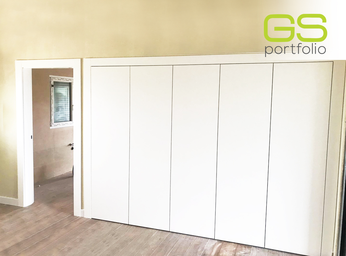 - Placard encastrée GS CONCEPT avec système d'ouverture tic-tac, avec 5 portes laquées en blanc mat.